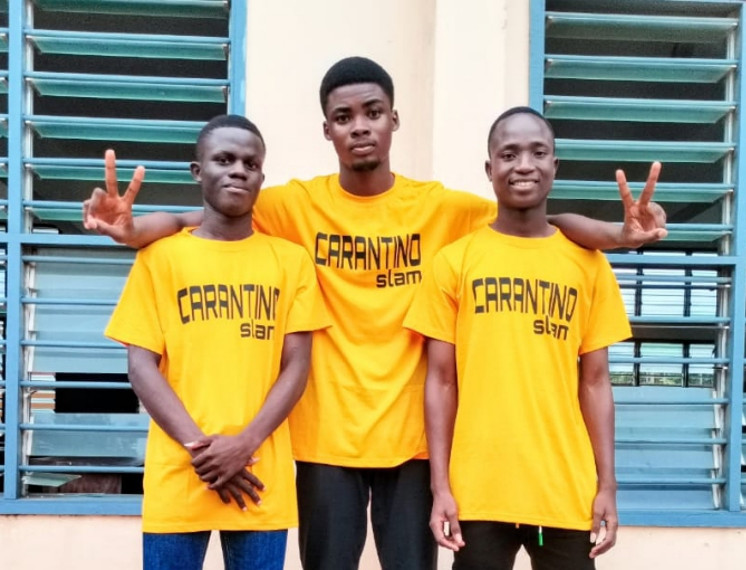 Trois voix , trois plumes , trois styles pour un seul plaisir, CARANTINO Slam . Un nom qui vient d;un , brassage entre les radicales de Carlos , Antoine et Innocent preuve déjà de la parfaite harmonie et entente scénique entre ces trois individus. Initiés au Slam à lÉcole Normale Supérieure de Porto-Novo il y a de cela trois années, ils en firent très vite une passion puis ensuite une carrière, tant leurs trio avait gagné en notoriété. Depuis ils enchaînent les prestations: baptême, conférence, mariage et surtout le festival du Cabaret Slam qui regroupe deux fois par mois, les slameurs de Porto -Novo . CARANTINO